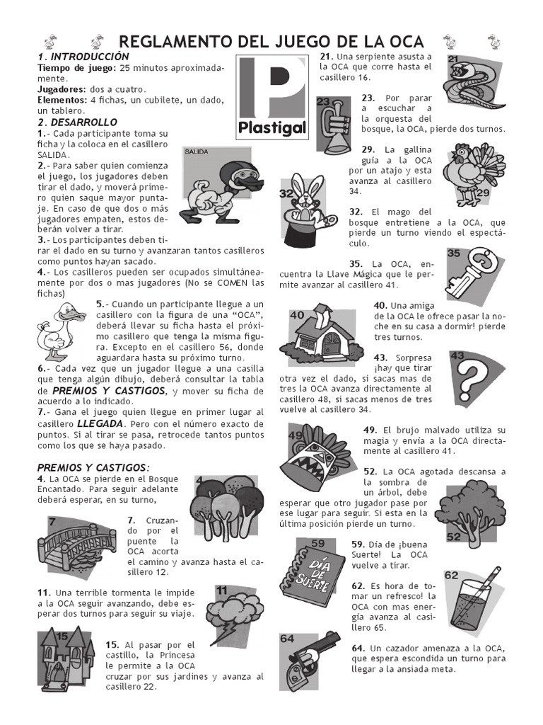 Una forma de ganar es que en la jugada llegues a la casilla 59 que contiene la figura de la oca, y como según las instrucciones del. Guardarguardar reglas juego de la oca para más tarde. Una de las más habituales es la casilla de la oca, que normalmente la puedes encontrar en las casillas 1, 5, 9, 14, 18, 23, 27, 32, 36, 41, 45, 50, 54, 59 y 63. Se recomienda a partir de los 8 años de edad… y hasta un máximo de 99 años. La oca y sus reglas / dinamica juego de la oca comunicacion interacciones de disciplina academica.